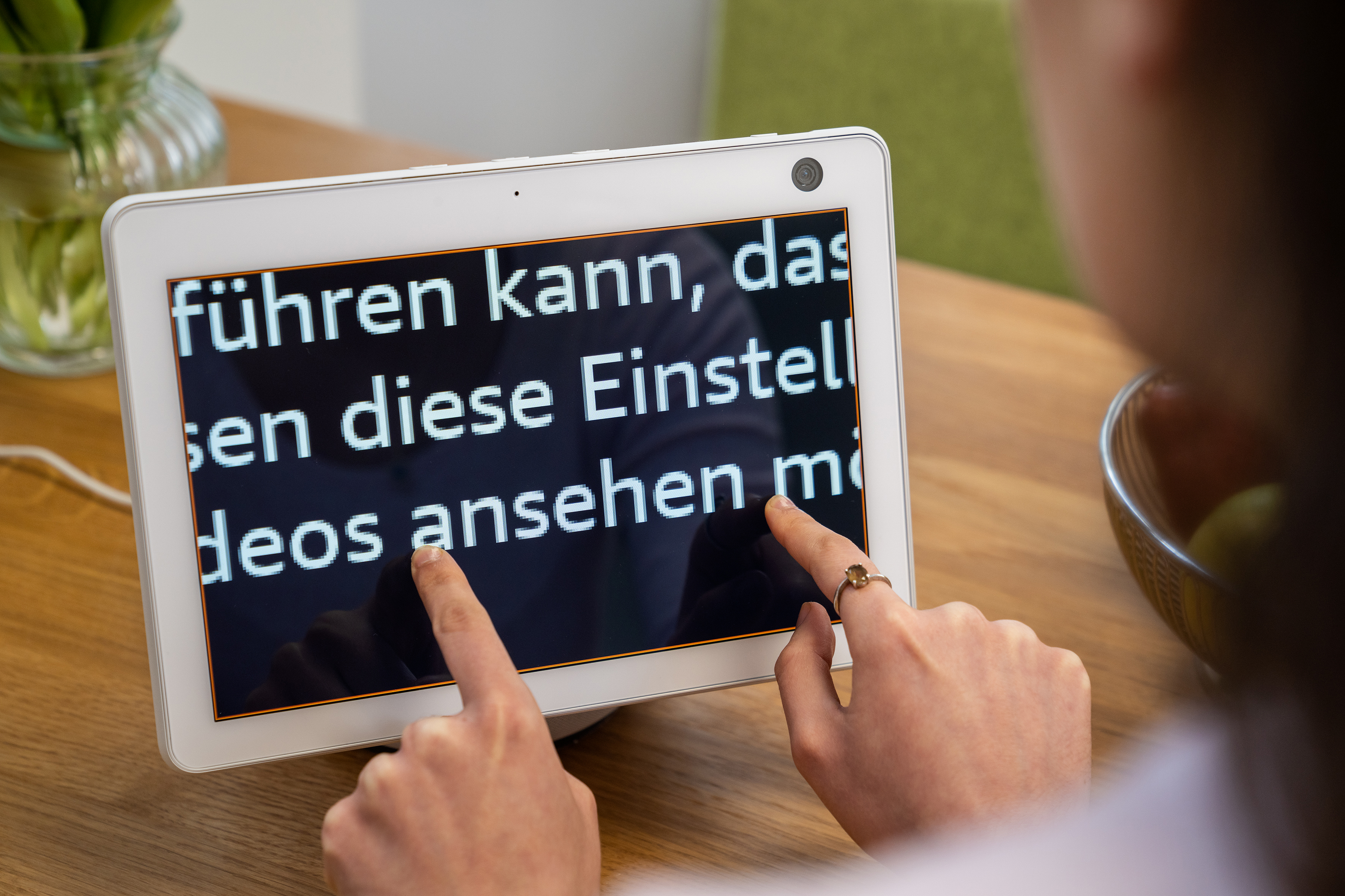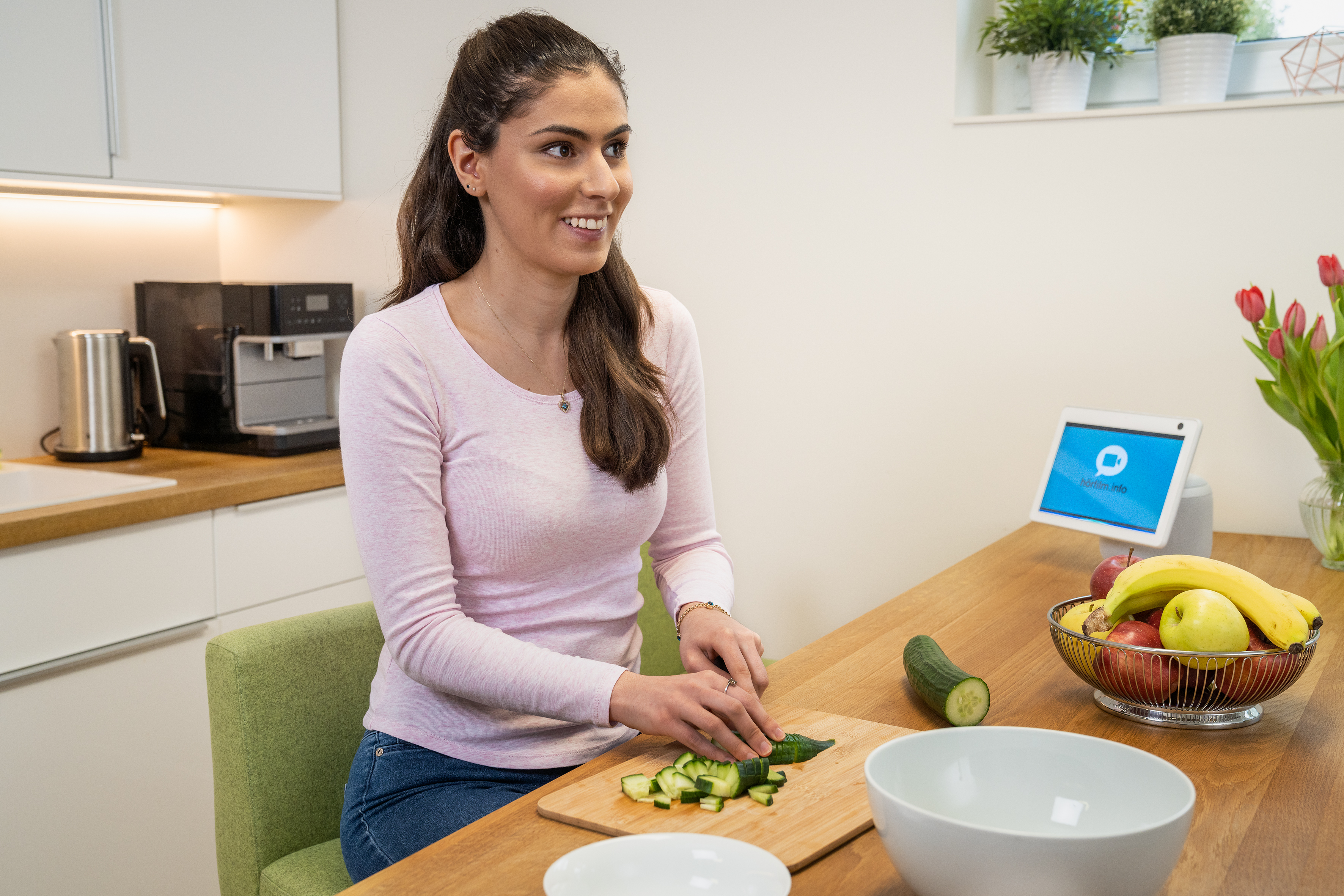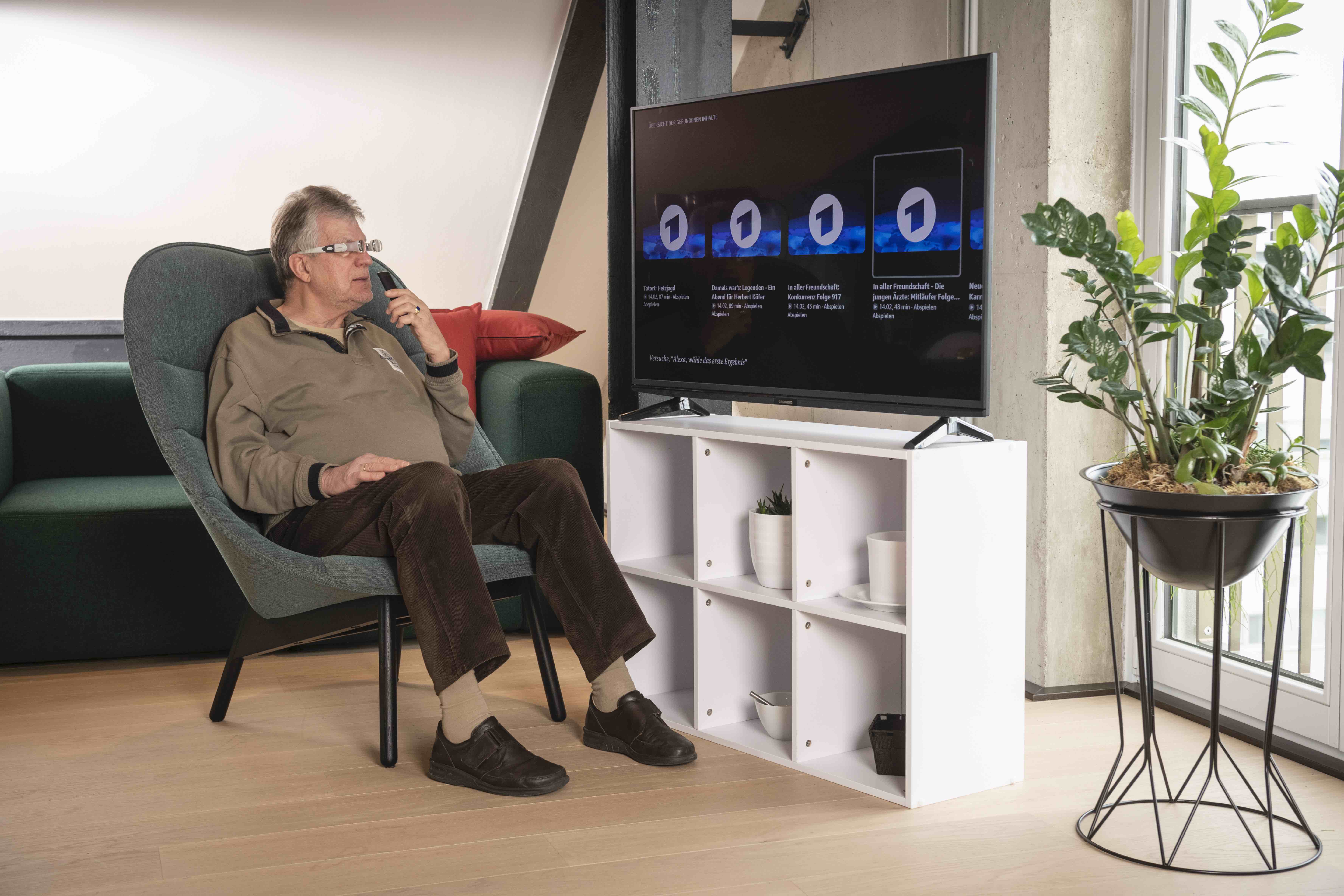 16.02.2021-Agentur Fink&Fuchs, Kunde Amazon: Barrierefreie Nutzung von Alexa für Blinde und Sehbehinderte + Alexa Hörfilm-Skill: Sehbehinderte Alexa-Nutzerin in verschiedenen Situationen zu Hause.