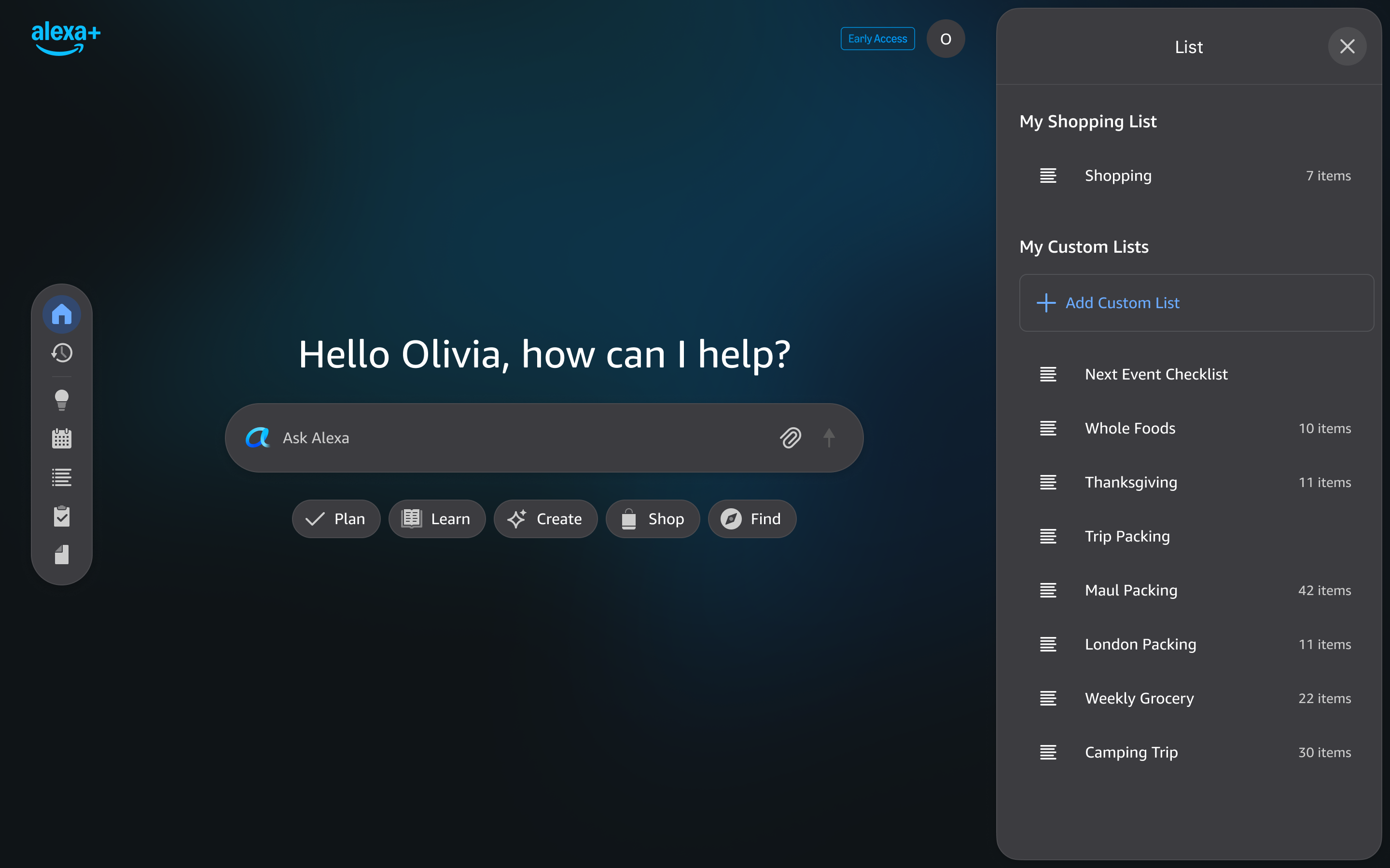 Alexa.com Homepage Shopping List